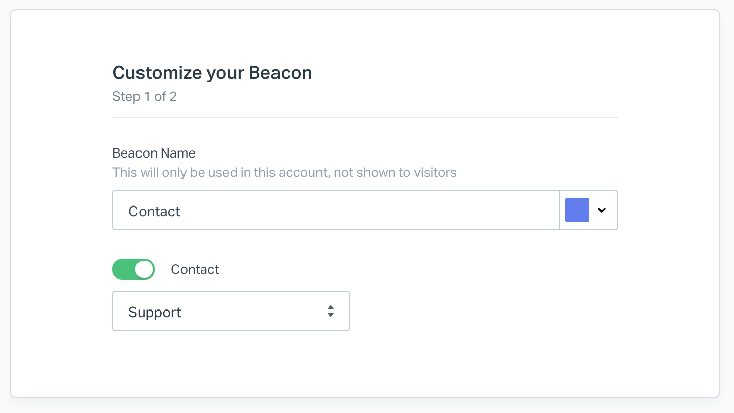 Help Scout walks you through all of the customisation options for your Beacon and provides a handy preview of what it will look like: