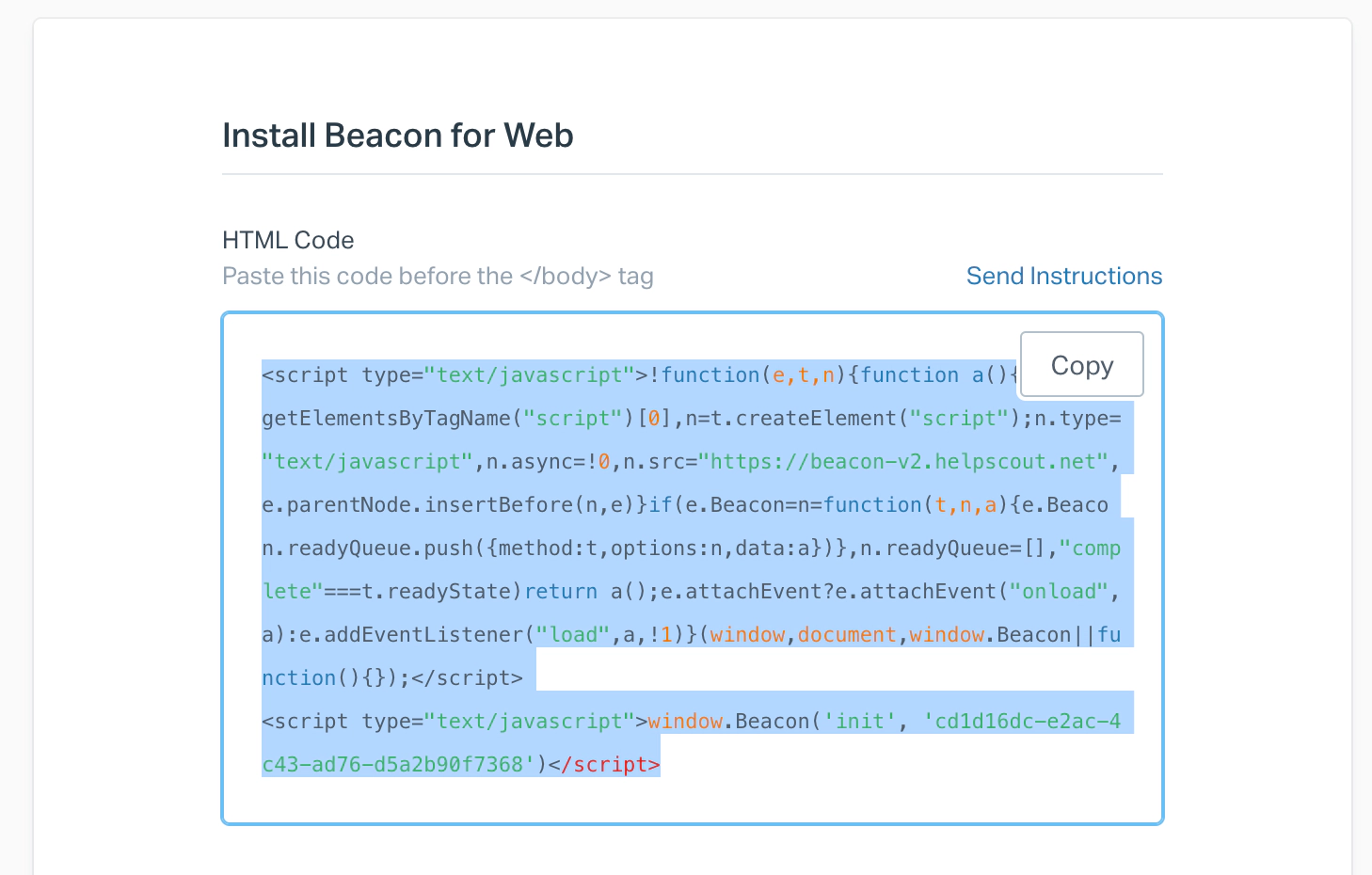 If you would like your Beacon to appear across your entire site, you can use the site-wide code injection feature inside Ghost Admin to implement this.