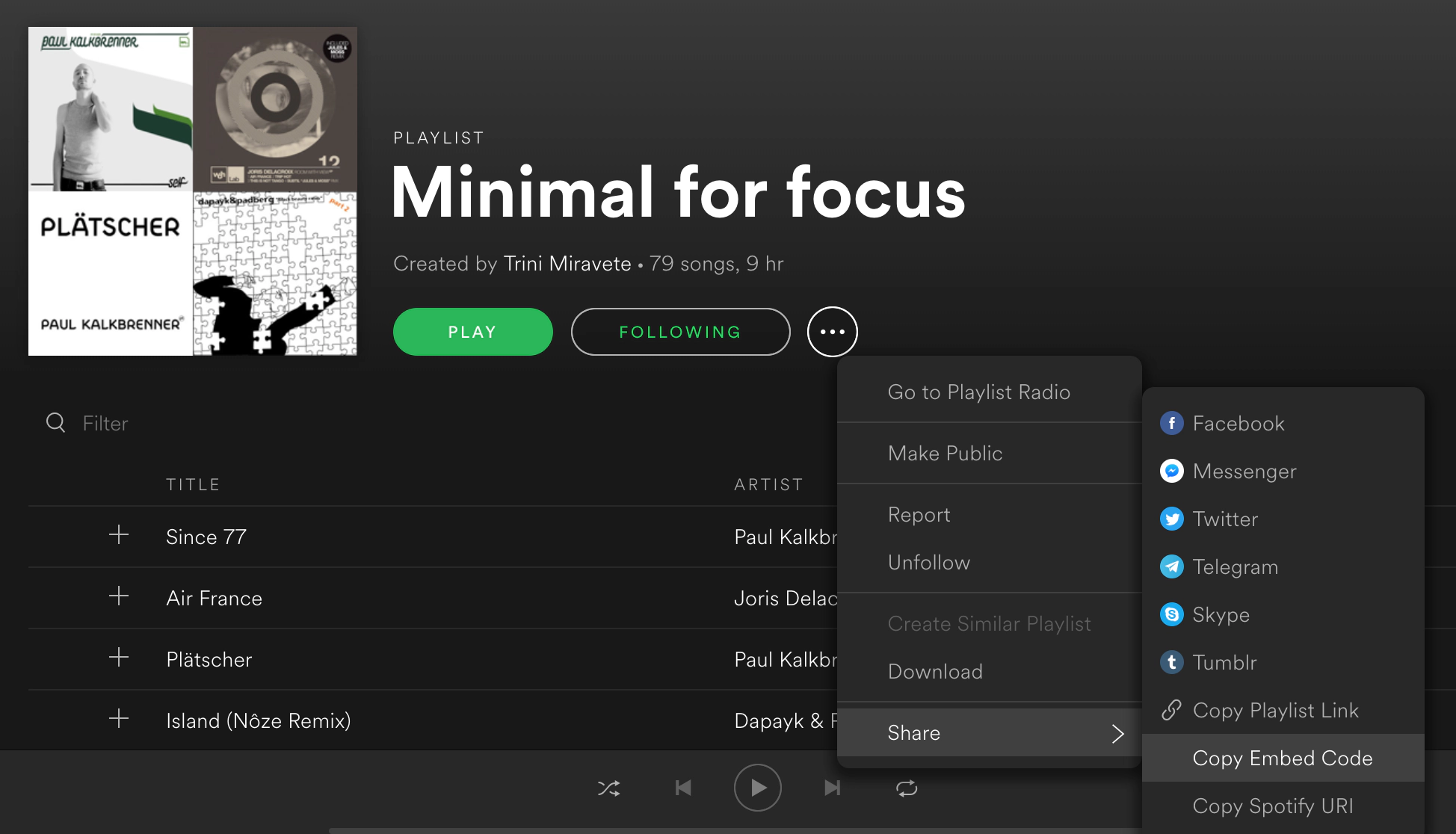 Once you eventually get to the bottom of the list, copy the playlist embed code!